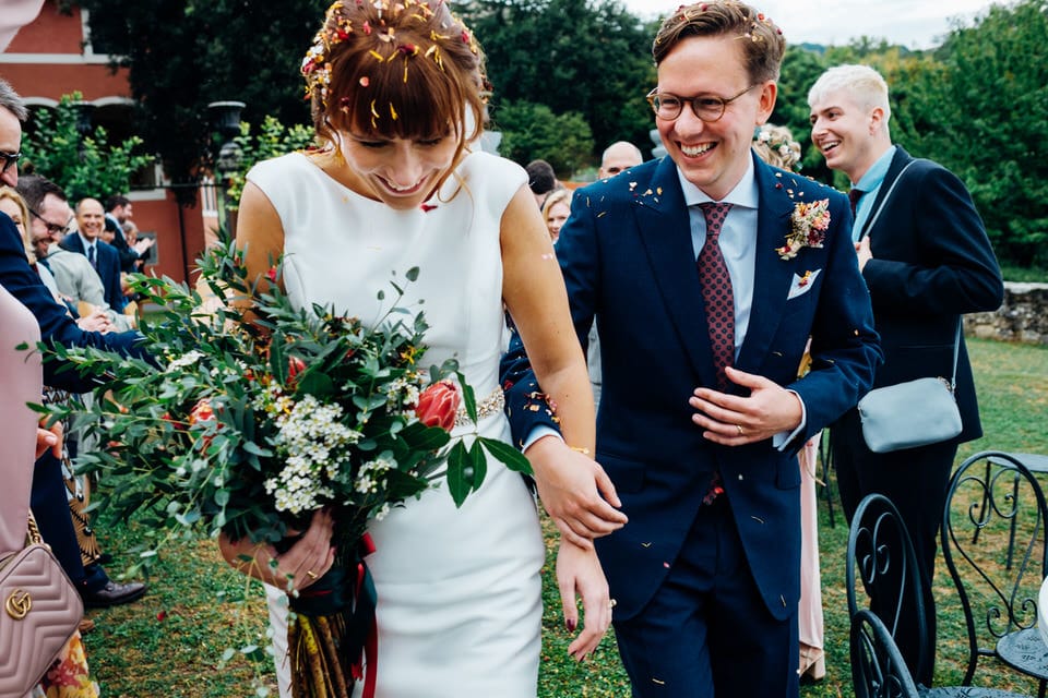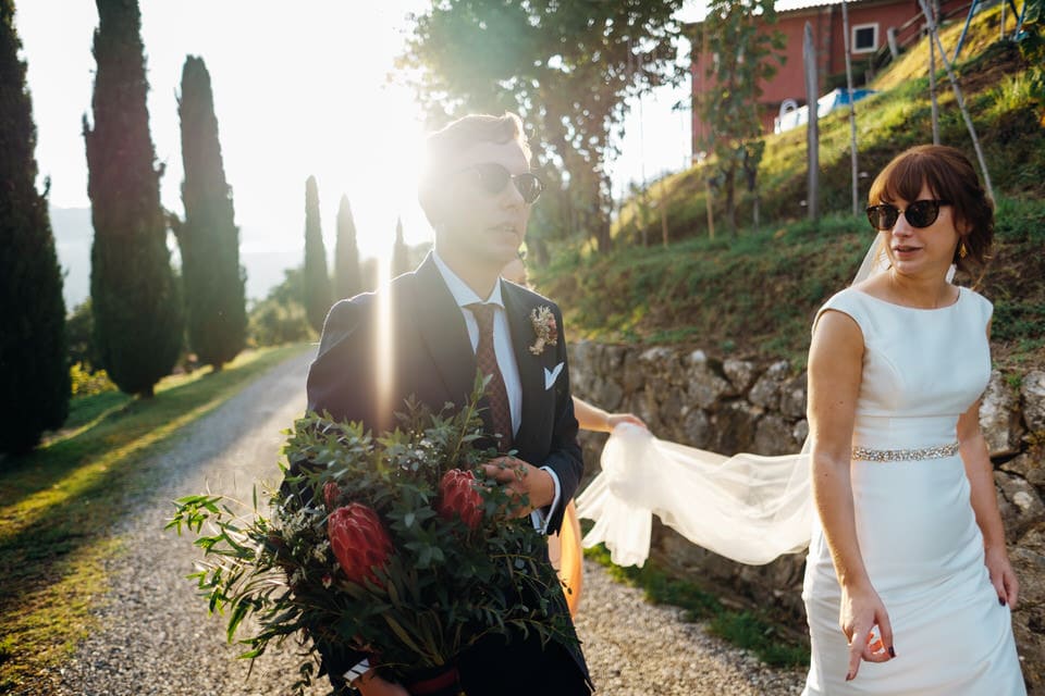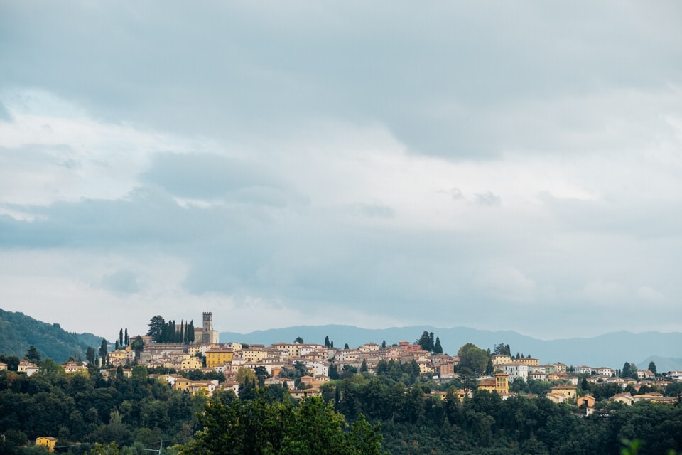 This weekender destination wedding in Tuscany was set in the quiet town of Barga, up a mountain in the Tuscany region of Italy. I travelled out to join the couple and their close family and friends, whose wedding venue was a private home called I Cedri that backed onto an orchard and swimming pool! For the first few days friends and family were welcomed with a carbtastic dinner of pasta and pizza (this becomes a running theme fyi) and as both the bride and groom are medieval historians, they organised a tour for everyone to visit a local medieval town and cathedral.