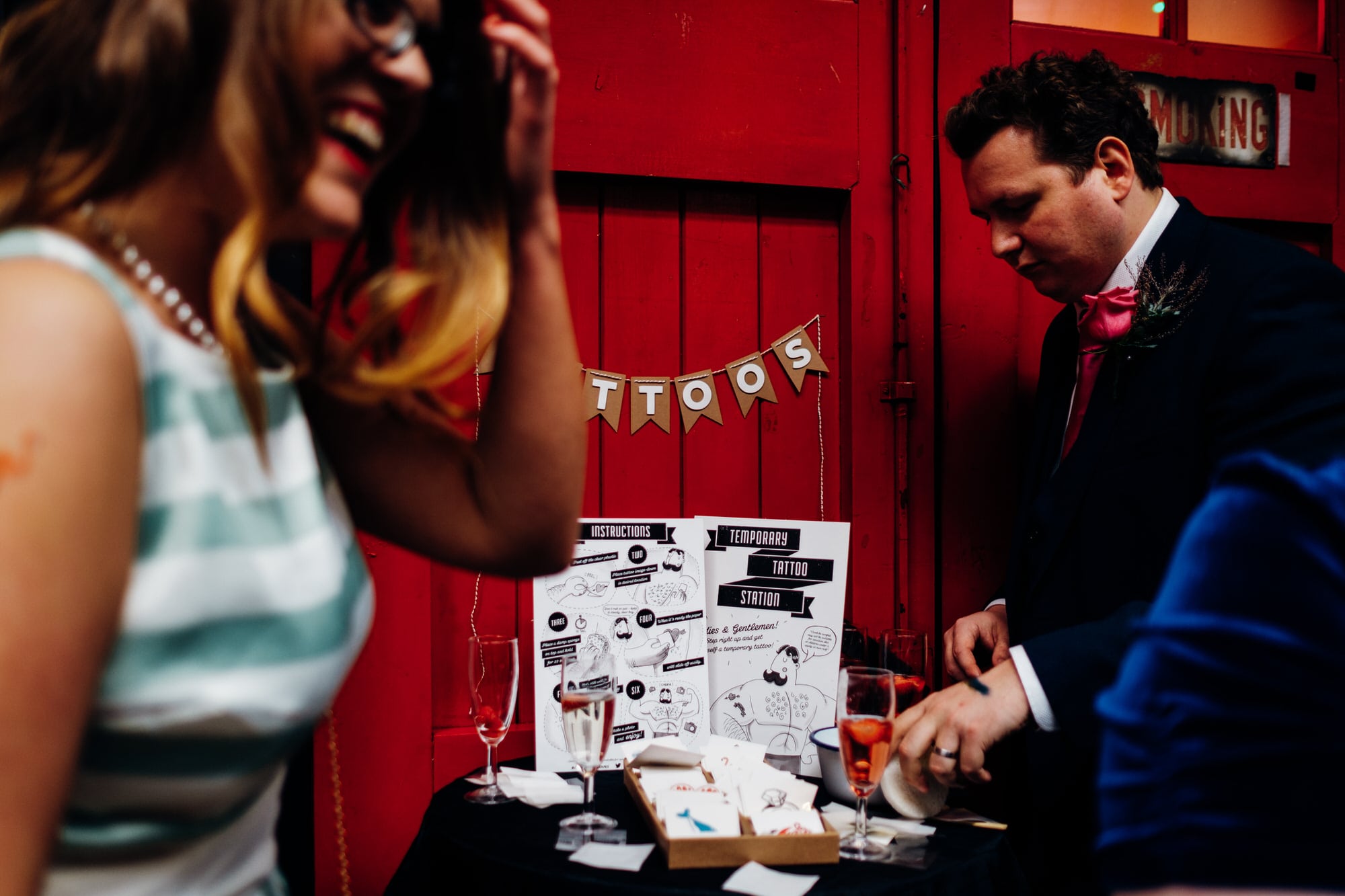 They also opened up the fancy dress photo booth which is in the end of the tube carriage bar and the guests were treated to pizza for the evening buffet. If you’re looking for a cool London wedding venue that really makes sure you’ll have a good time definitely consider an Islington Metalworks wedding!