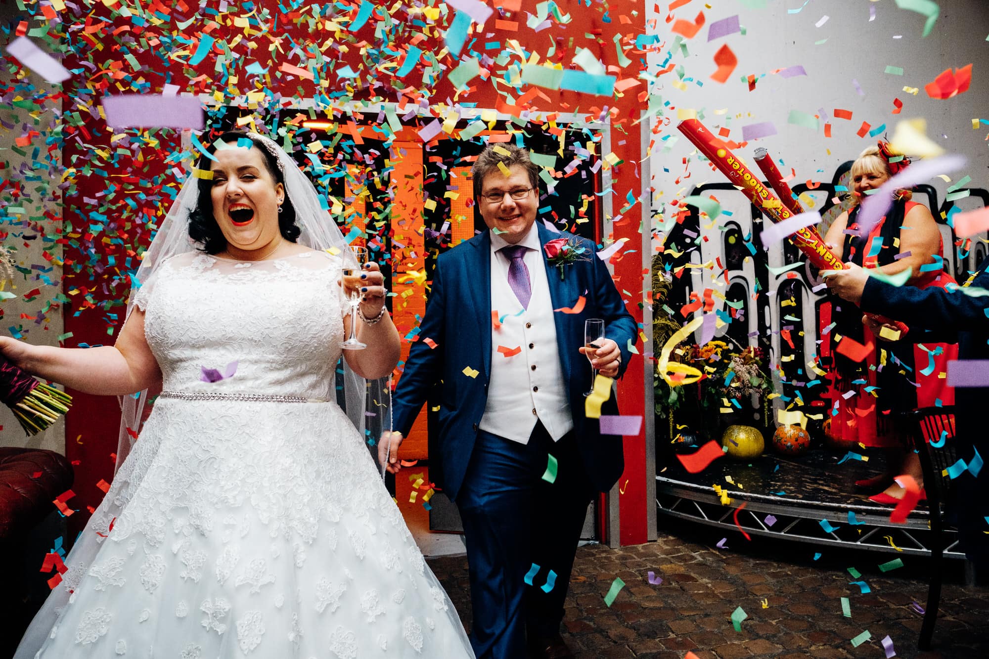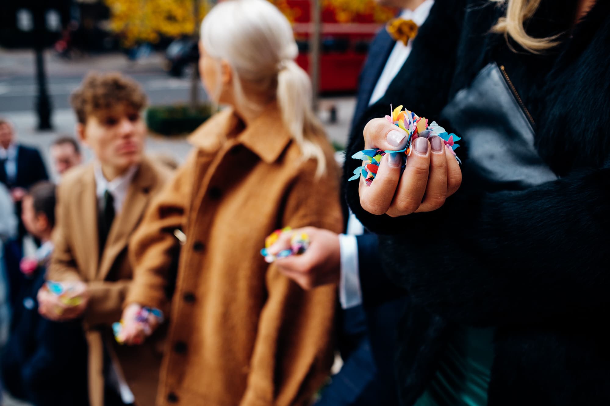 Bright colours was the theme of the day, they had the first of their confetti throws, this one outside the town hall by hand…