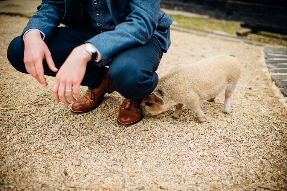 After some chill time, we took a few couple shots in these awesome traditional gypsy caravans and with the piggys, which was a dream for me. We didn’t go as far as picking up the piggys because the momma sow could be territorial, instead we all had our shoes and feet nibbled!! Their buffet dinner was held in the barn and was followed up by speeches and the first dance! Their party time was a little bit different, they opted to have Rock-oke, a mix of a live rock band and kareoke and the saw the evening out with a conga line around the courtyard!