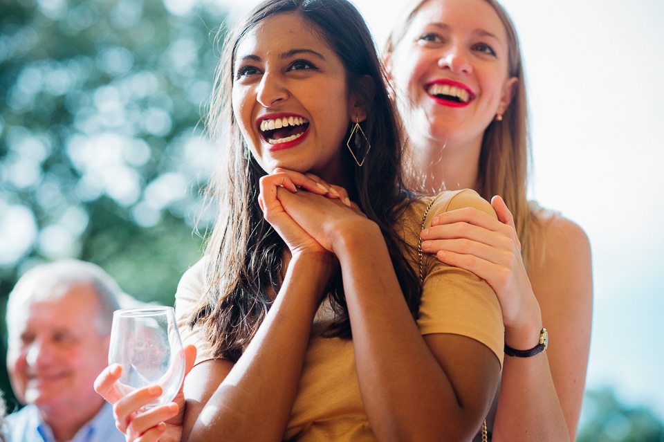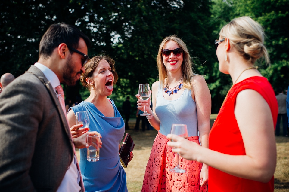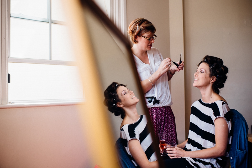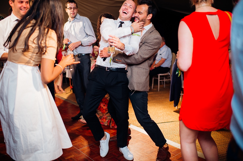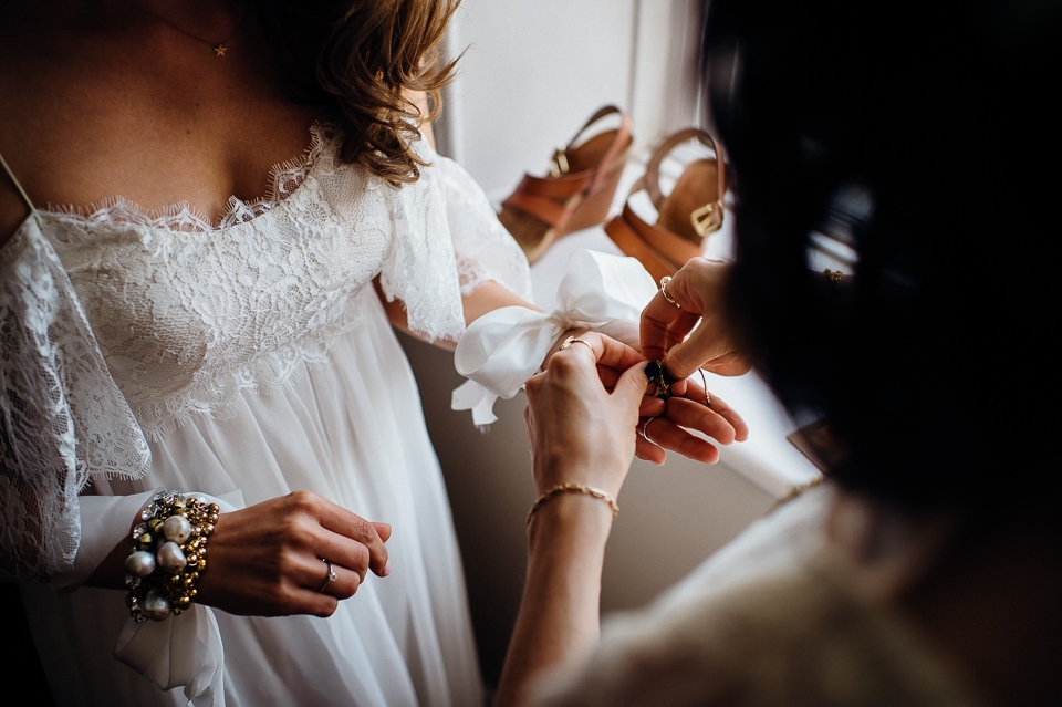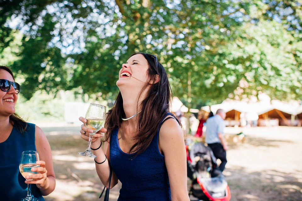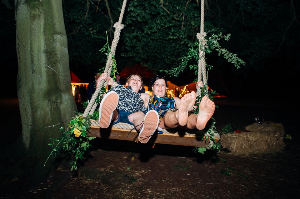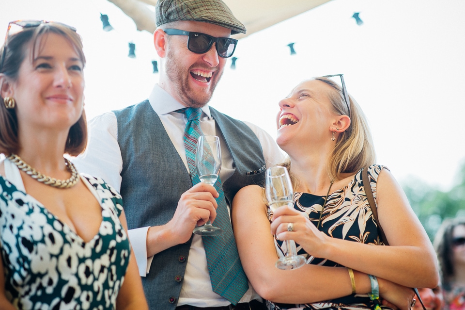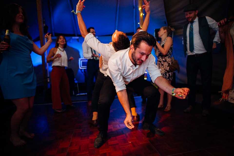 Gosh I’ve been really blessed this summer, I’ve been on beaches and in lakes and now in a woodland! Annie and Drew had a very chilled out ceremony in the woods of Squirrel Lodge (which is run by a very nice man who lights a huge fire) conducted by a friend. Annie got ready at a nearby hotel and wore a lace empire line vintage style dress she’d brought in from Australia, these gorgeous, huge real pearl bracelets, an ivy crown (with her bridesmaids in daisy crowns), and big 70’s style platforms. Drew wore a blue suit with a turquoise skinny tie. During the ceremony the guests sat on hay bales and the backdrop included a natural wood arch. The bar was this incredible antique drawer chest decorated with lavender and terracotta pots. They held their speeches at this wooden cabin which was strewn with lounging chairs, blankets and flowers, before having their dinner in the tipi where the table names were Annie and Drew’s favourite bands. They had a cool soul band to see their guests through the night before they ended the night round a huge fire pit!