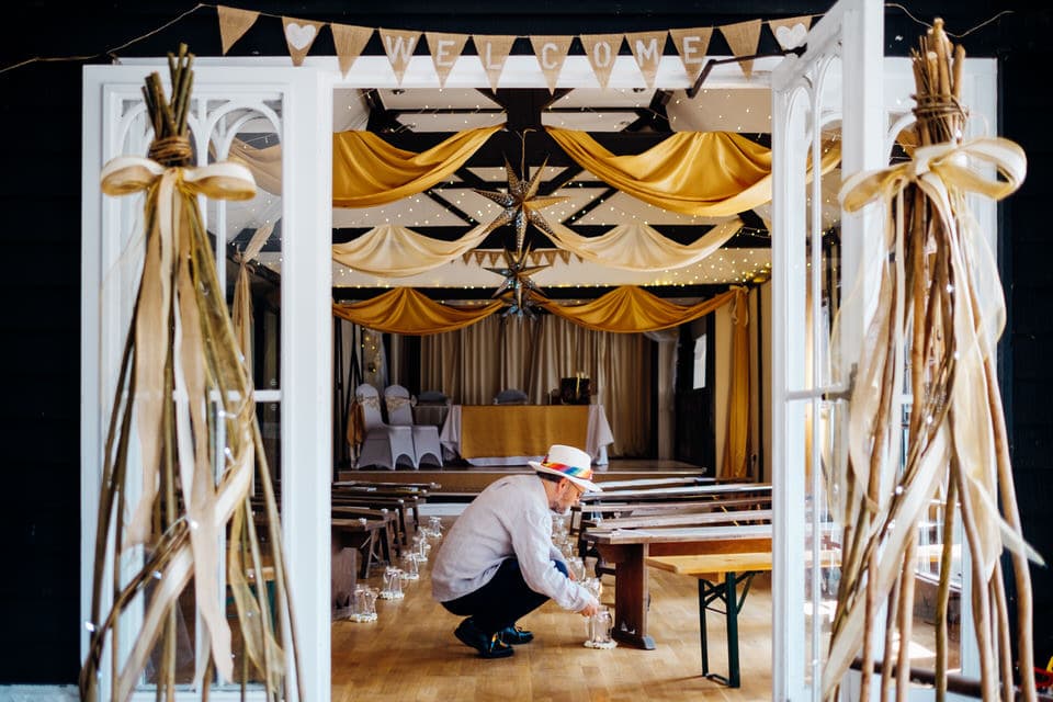 We realised early on that it is hard to find a wedding venue that allow for the flexibility that we wanted. A lot of venues require you to go with set caterers, decorations and/or bands etc.. When we found Bellows Mill we knew we were on to a winner as they were so welcoming and worked with us to facilitate all the elements that we wanted. The set up day before the wedding was a series of mini disasters including a car breakdown, a fire (!) and illness. It meant we still had some prep on the morning of the wedding and we didn’t even have time for a rehearsal of the ceremony. But all our family and friends grouped round to help us and the actual day ran so smoothly, none of it mattered.”