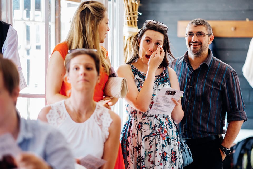 They had our ceremony and reception at Bellows Mill, on the edge of the Chilterns in Bedfordshire. They were married in the barn in a ceremony where they wanted to emphasise being mindful in the moment. They said “the emotional words of the day are another standout memory for us both; our vows, the readings and the speeches.” The ceremony was very moving with a few tears from Steph and the guests. Speaking about their engagement, they said “it was quite early on in our relationship that we decided that marriage was probably on the cards for us, although at that stage it was not legal in the UK. For many years we focused on our careers and engagement kept getting put off despite our many conversations about it. Eventually Anna hatched a plan. We had a summer holiday in Slovenia and took a trip to Bled island in the middle of Lake Bled in the northwest of the small country. On the day Steph thought that we were on the brink of an argument because Anna was acting so strangely. It later transpired that Anna was preoccupied because the island of Bled was so crowded and she could not find the right place to pop the question. Eventually Anna found a small wall which she made Steph perch on. Steph was confused as Anna fumbled around in her bag but eventually when Anna pulled out a ring box, it all became clear. Anna, not wanting to be presumptuous about Steph’s tastes, had arranged a ring fitting at a small jewellers on Chancery Lane on their return. Steph said yes! Prepared with a piece of ribbon, Anna fashioned ribbon rings for both of them to wear in the meantime. Steph cried for the whole boat journey back to the mainland.”