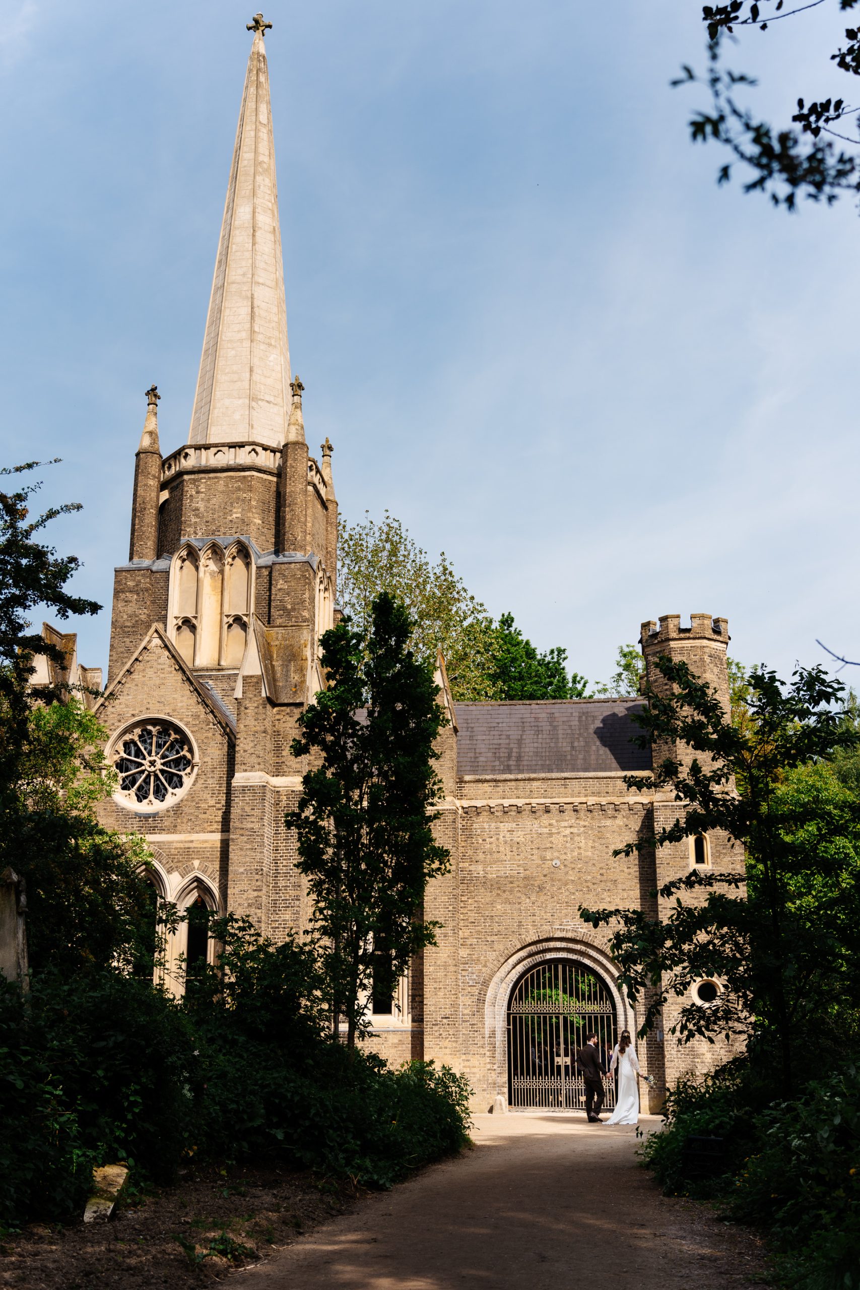 I was one of the first wedding photographers to shoot a wedding at Abney Park Chapel after its recent renovation. They have done a stunning job in restoring the interior and the stained glass window. It is a unique and exclusive place that has the aesthetic of a modern church but you can have your civil ceremony in it. It is situated deep inside Abney Park. Therefore, ensure your guests don’t get lost by providing good directions. You have to add on a proper 5 mins walking time from the edge of the park gates. An advantage of such a hidden location is that you can get married in the middle of London but it feels tranquil.