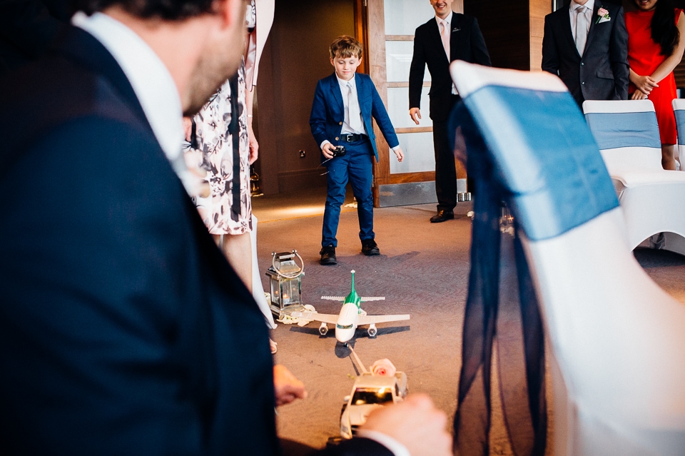 I was really flattered when Harriet, a fellow photographer asked me to shoot her wedding that was being planned in six weeks! Dave and her son are both really into planes and lego, so it made a lot of sense to hold the ceremony at The Aviator hotel and have lots of wonderful personal touches such as the rings being taxi’d in by a plane and remote controlled car as well as planes and various flying contraptions to muck around with in the woods.