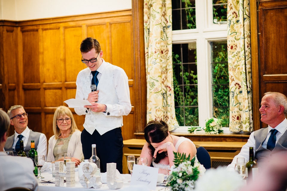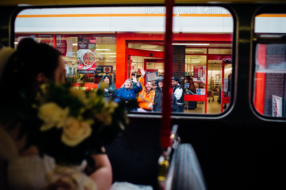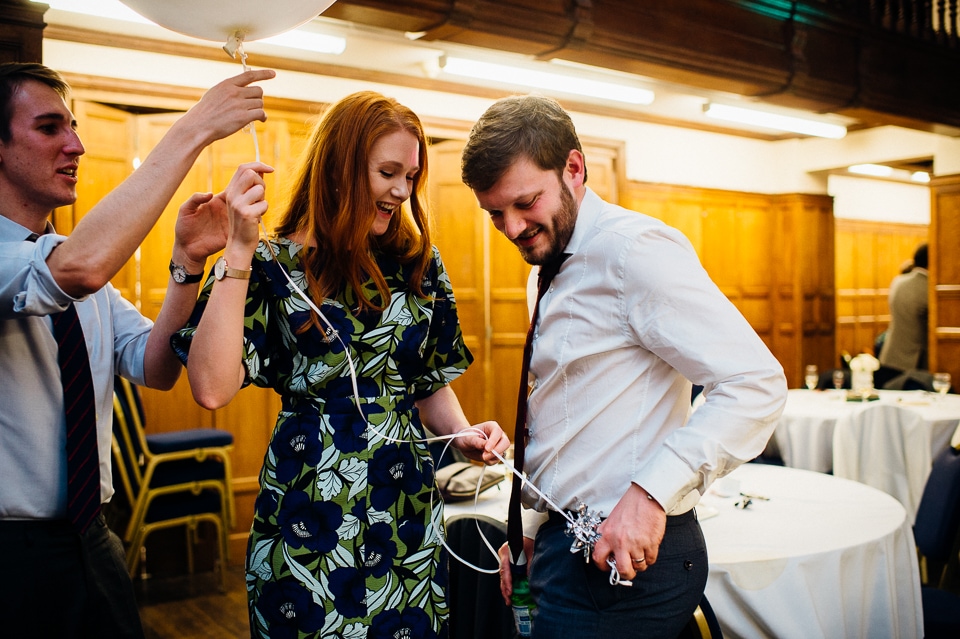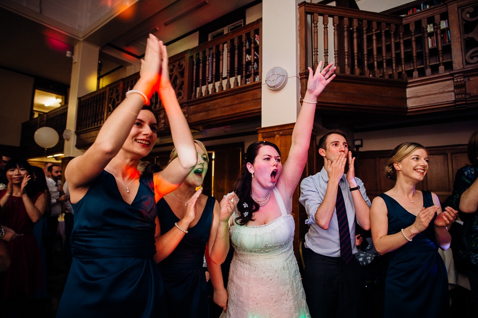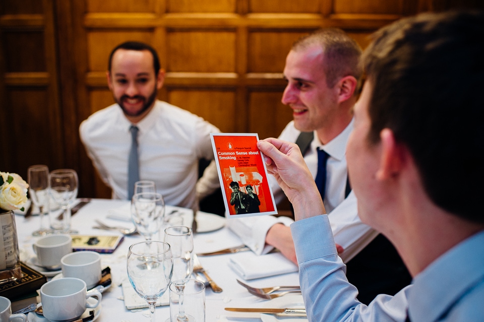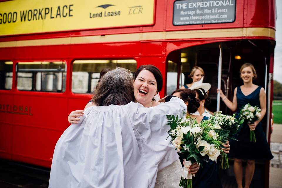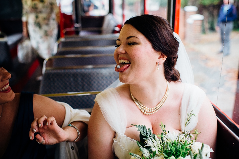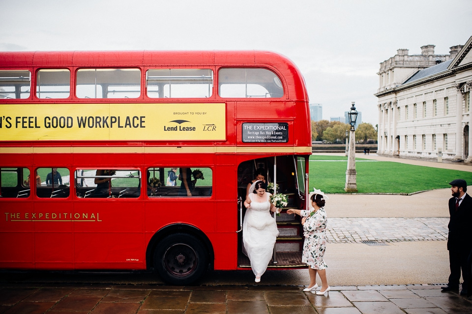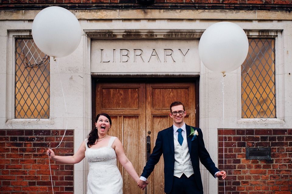 Jo and Harry had a lovely and down to earth book themed wedding at the Charlton House, with a traditional ceremony at the Chapel of St Peter and Paul in Greenwich. Jo started the day getting ready at home with her bridesmaids who wore dark teal dresses whilst she wore a white dress from David’s Bridal. They all caught a red double decker London bus to the Royal Naval College to a ceremony in what is undeniably one of the prettiest chapels in London! After the ceremony everyone jumped back on the London bus and heading to Charlton House, or more specifically to their library! All the tables were named after fictional locations (including Kings Landing!), and the guests had classic penguin books and postcards hand selected for them. After the meal, speeches and first dance, Harry had an amazing surprise for everyone- he jumped on the guitar and proceeded to play a full AC/DC set, something he’d dreamed of doing for a long time! Jo loves glow sticks (as well as balloons) so they stocked the guests with tons of glow sticks to party with!