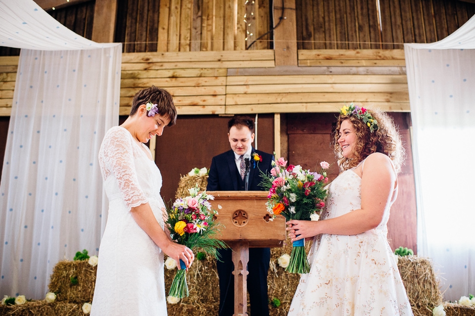 Laura and Rosie’s bright and Limoncello fueled hand fasting festival wedding at Furtho Manor Farm!