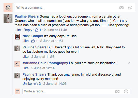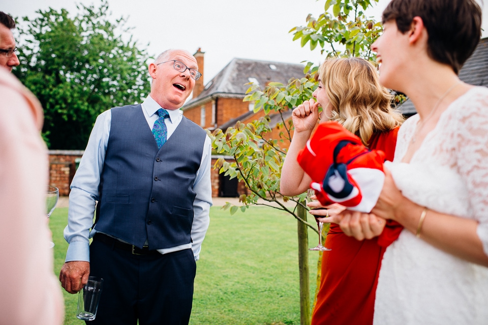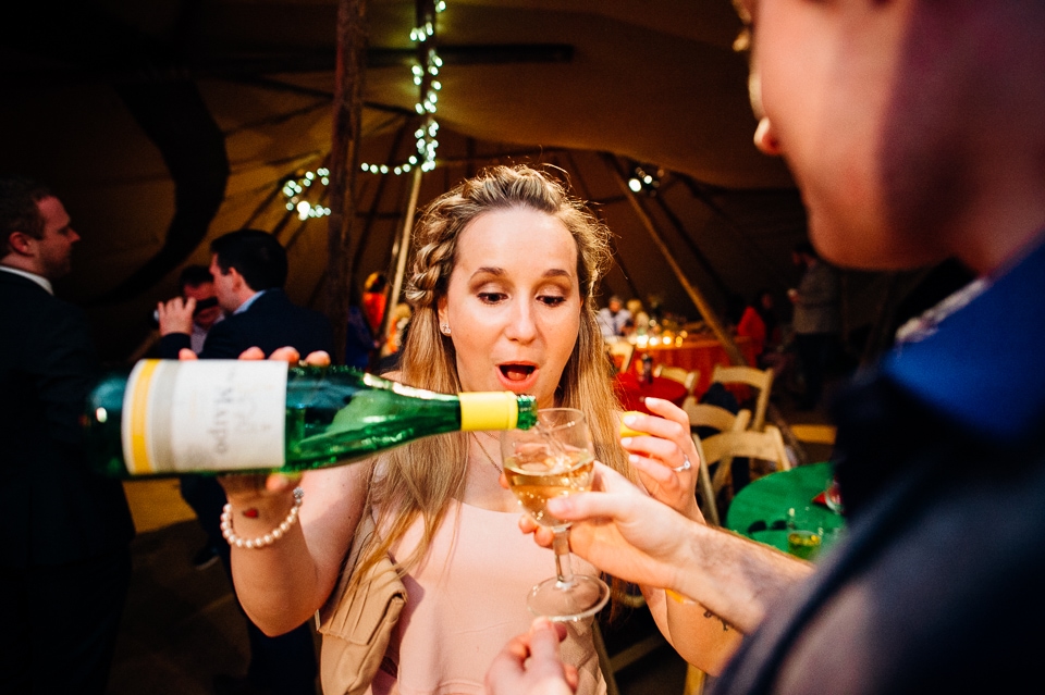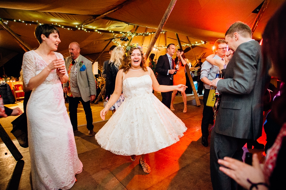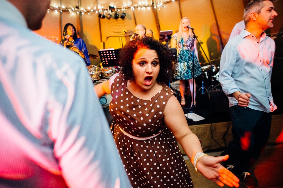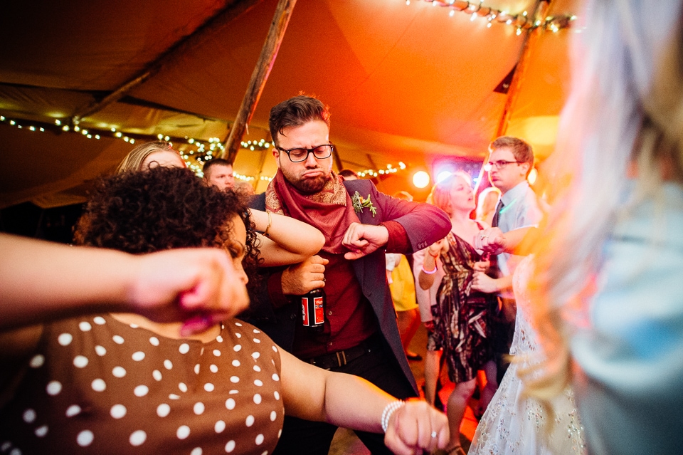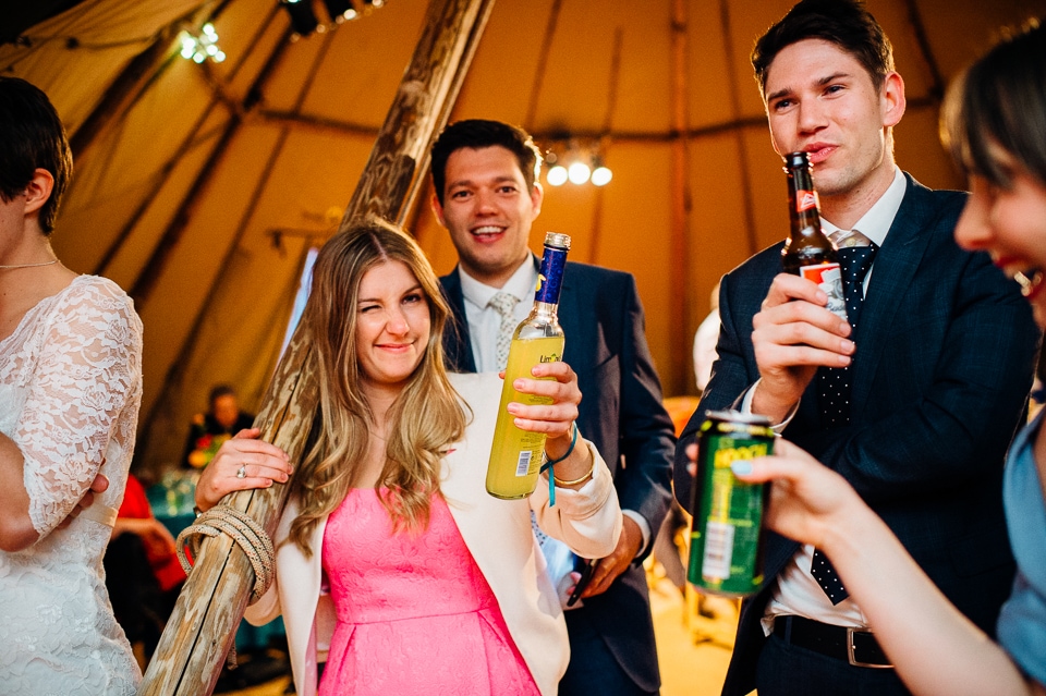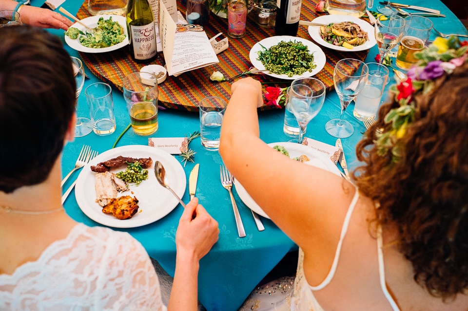 The reception was held in a tipi set up in the next field. They had decorated it with beautiful bright silky materials, wild flowers and beaded colourful glassware. As Laura and her family are huge Arsenal fans, the match was aired so the drinks reception was both a reception and a footie session. They had a barbecue and an ice cream van for dessert which was followed by very emotional speeches. After that it descended into the madness I know and love where Great Grandma caught the double bouquet toss from a VW and then… wait let me linger for a second because this story is so awesome it deserves to be included: When I shared the bouquet toss shot on my FB page (this is all public by the way so it’s fine for me to share), G-Gma, the bad ass boss lady she is, posted this-