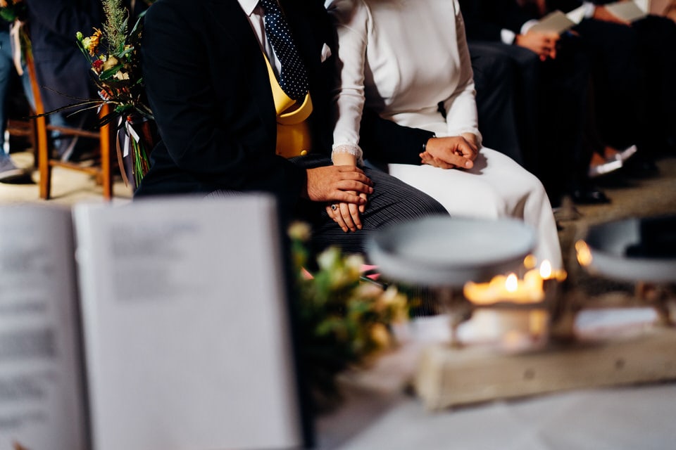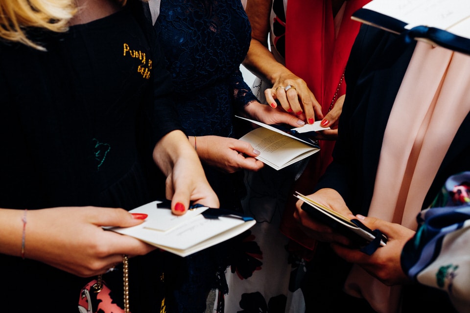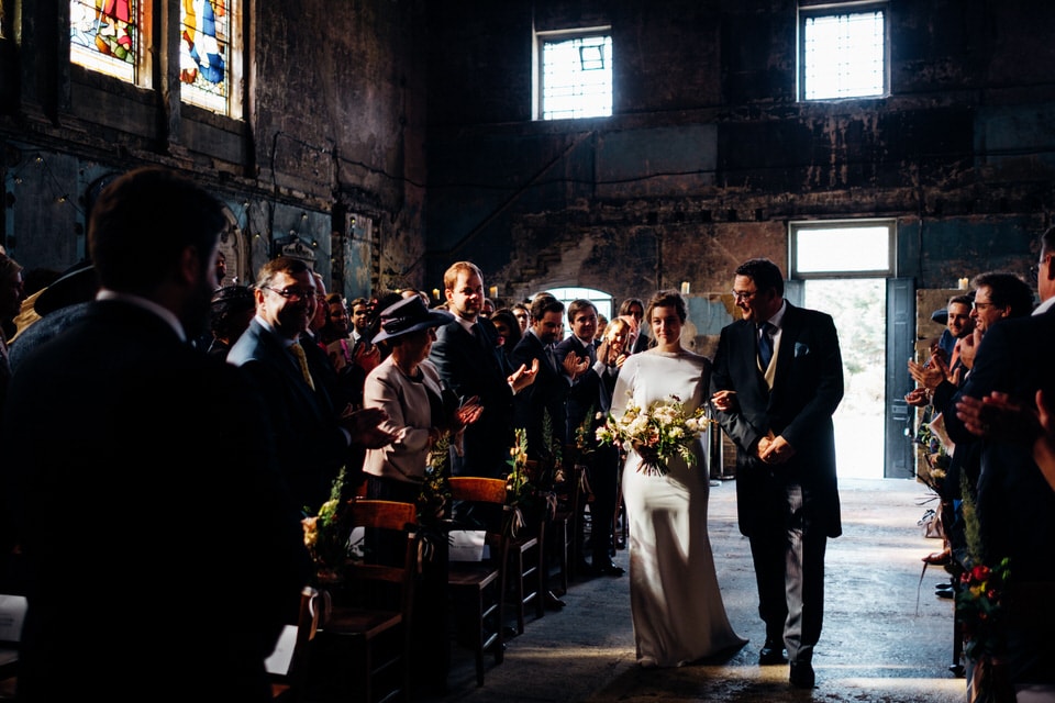 The couple opted to have a ceremony delivered by a friend, along with speeches from a multitude of close friends and family from different parts of their life. They also had a ring warming ceremony where each ring was passed through the hands of all the guests and blessed with their love and well wishes. They had a folk guitarist performing between some of the heartfelt speeches