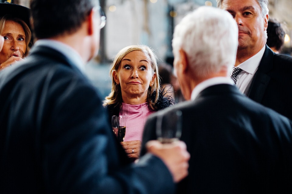 At the Bistrotheque they also had their best people deliver some speeches and had a caricaturist entertain the guests, along with customised mint favours before every collected their table plan name card to take to the Amadeus Centre for the wedding dinner.
