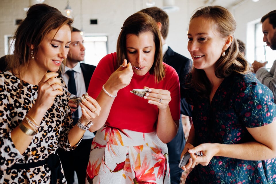 After the ceremony they had brief drinks at The Asylum before boarding a bus to their first reception venue the Bistrotheque which is a hidden away restaurant specialising in oysters- a Belgian favourite!