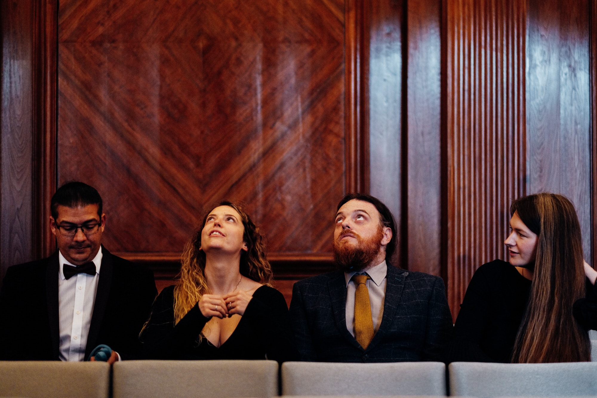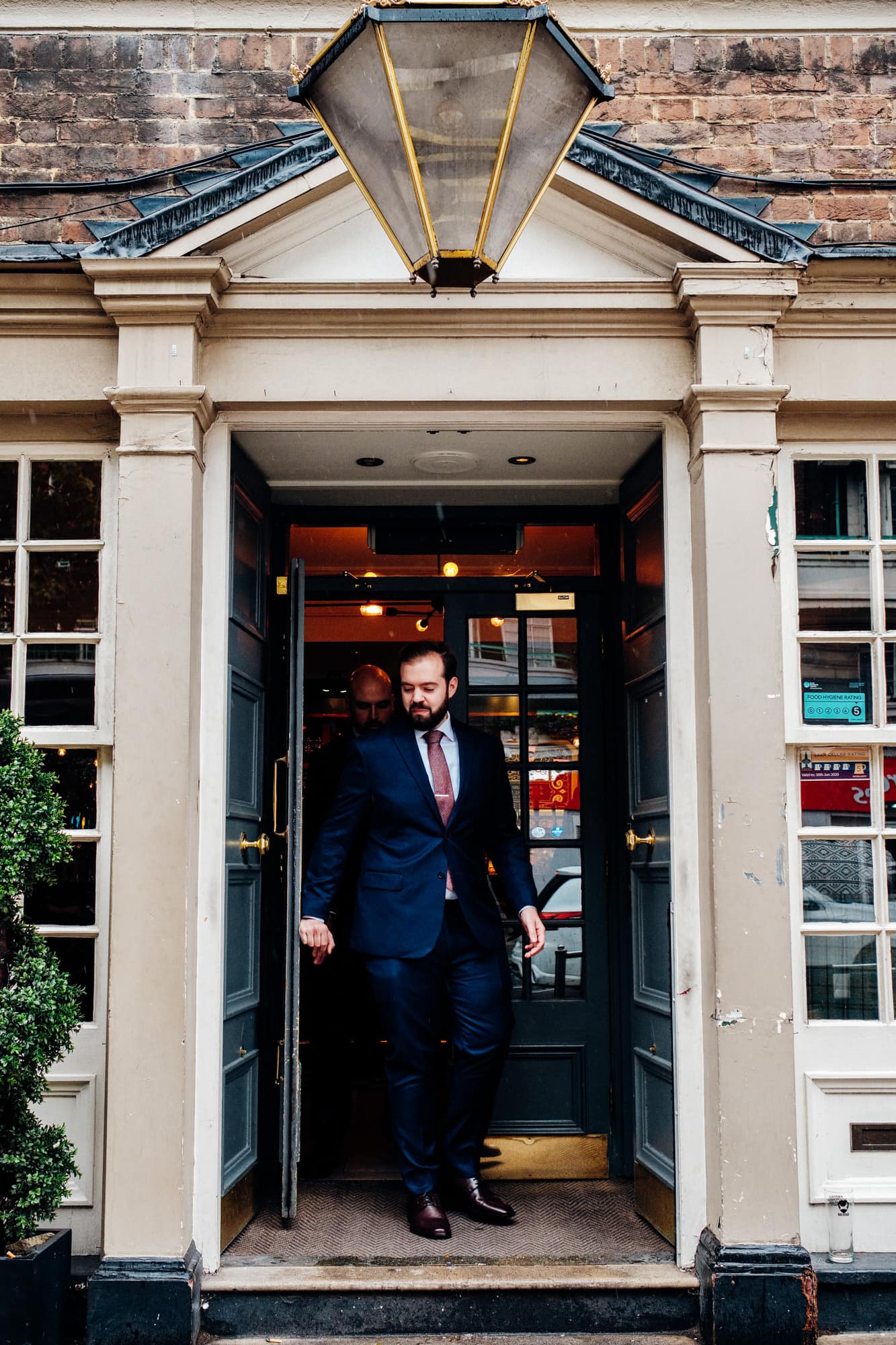 Betty and Mark hired me as their fun London wedding photographer for their had a relaxed civil wedding with an informal ceremony where they didn’t want the morning prep and instead I started the day with Mark and his friends at a local pub. The Old Marylebone Town Hall is a brilliant fun London wedding venue that is based right in central London with a beautiful elegant stone column entrance that’s ideal for your big group shots, before you go on towards your London pub wedding.