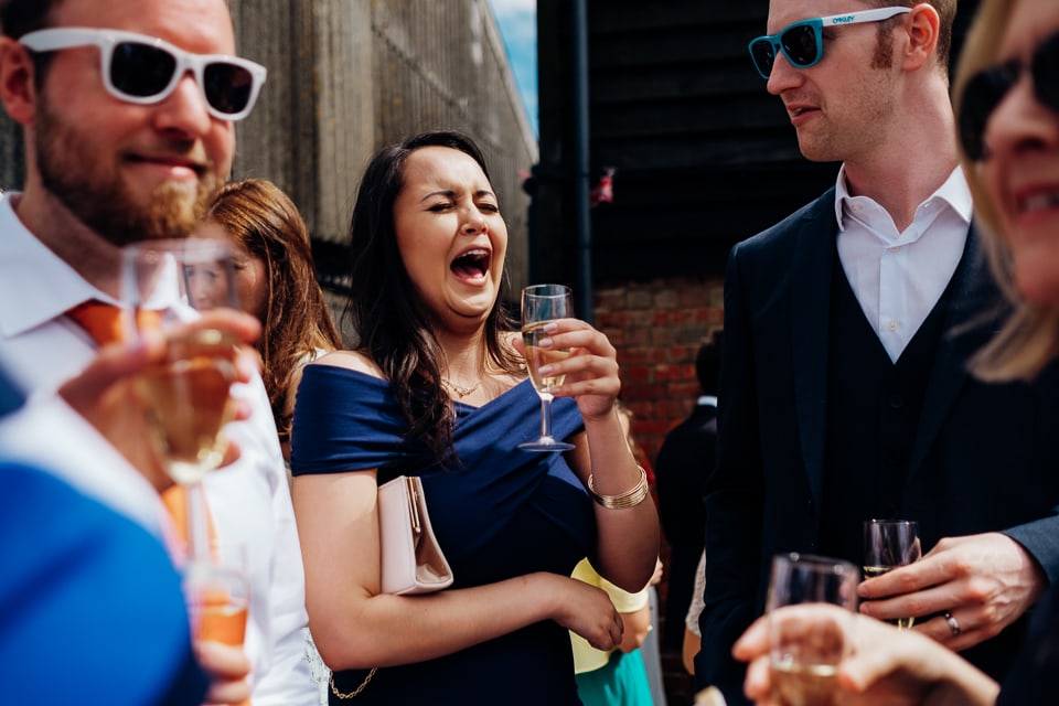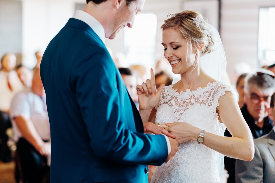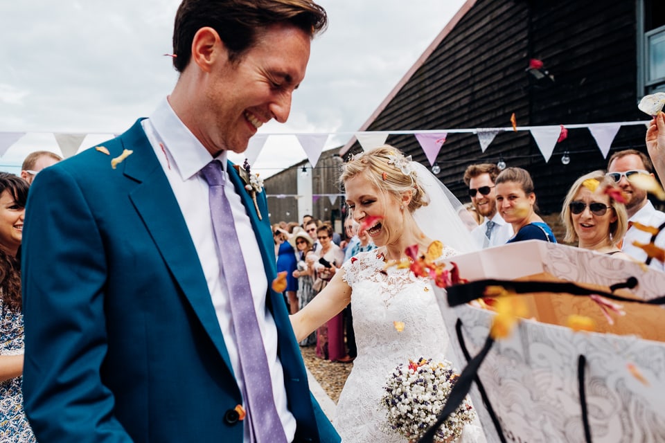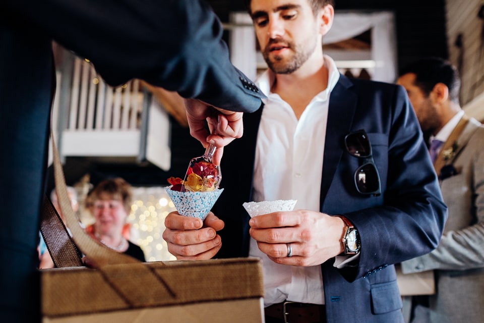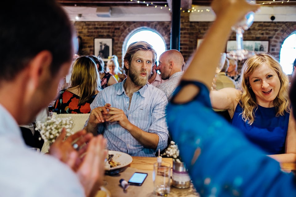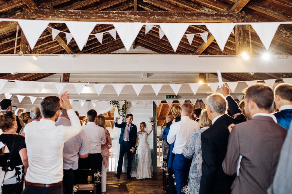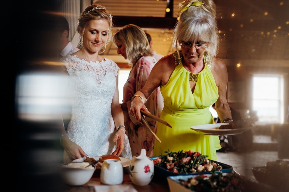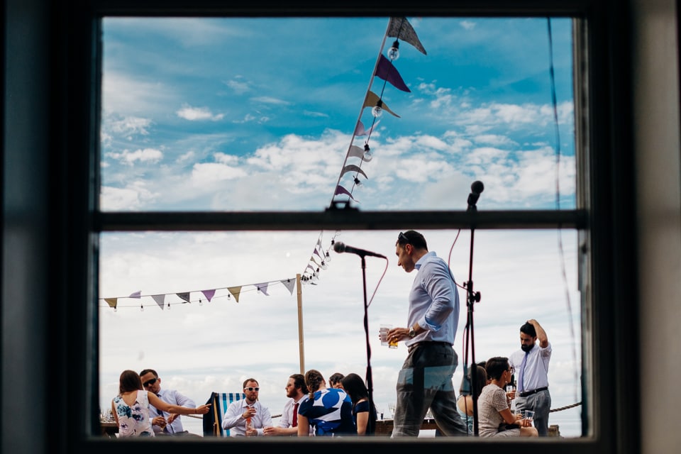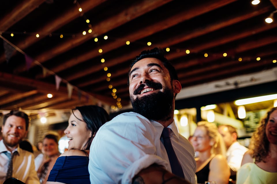 Sam and Rachel are a wicked couple who, despite being society’s definition of fitty mcvites are both humble and sweet, preferring to not have any getting ready photos as they’re not keen on the attention! So I started my day at the amazing East Quay Venue which sits right on the beach at Whitstable, the town famous for its oyster festival (seafood, nom nom nom). Rachel wore a gorgeous Maggie Sottero dress and a hair vine handmade by her friend. Sam wore a wicked Paul Smith suit in a peacock blue. It’s super cool decked out with fairy lights and it has atmospheric wood and brick all over. Sam and Rachel named the tables after drinks with stories about their lives that made each drink special. They hand made the place cards by cutting out head shots of their friends and family and mounting them onto corks and hand painting the corky bodies! It was a surprise to the guests who had no clue their photos had been sneaked from social media etc., so it was a fun reveal! They also had a truly unique wedding “cake” which was actually a green jelly sandcastle surrounded by biscuit crumbs that resembled sand! After the ceremony the guests had drinks on the stoney beach whilst Rachel’s brother and their various talented friends provided the music! In the evening after their BBQ dinner they got our the glow sticks as the groom took to the DJ decks for a short stint alongside their DJ friends.
