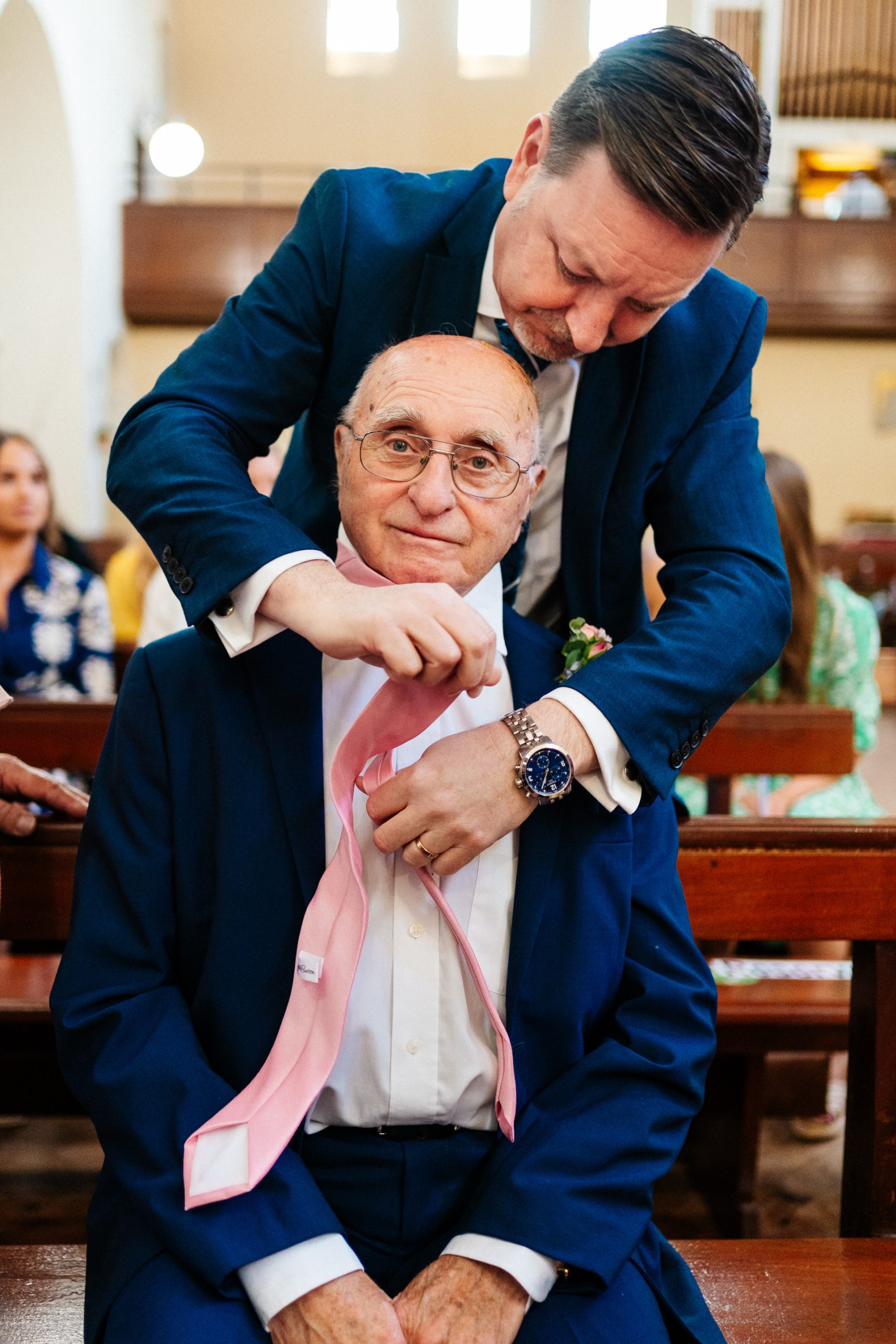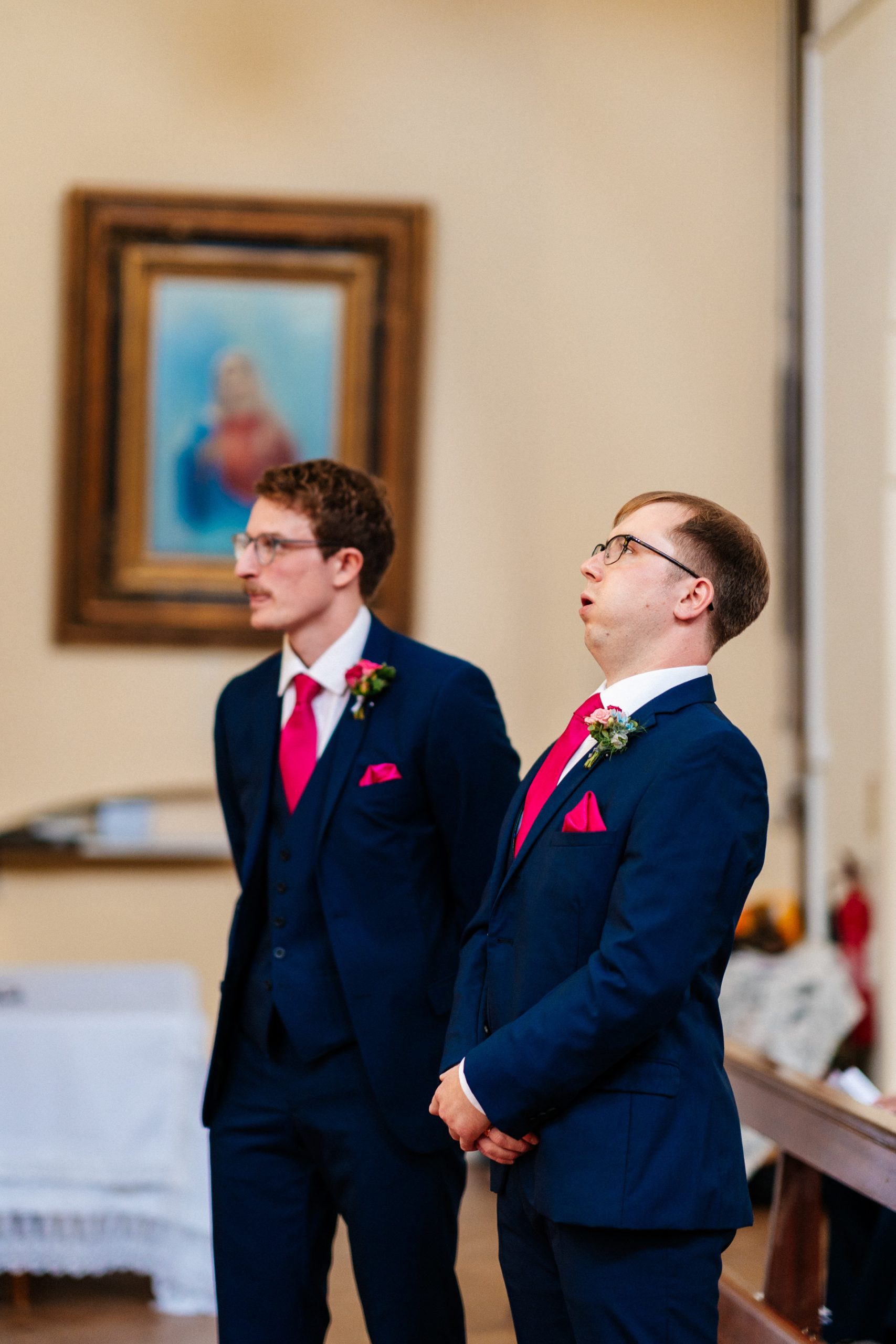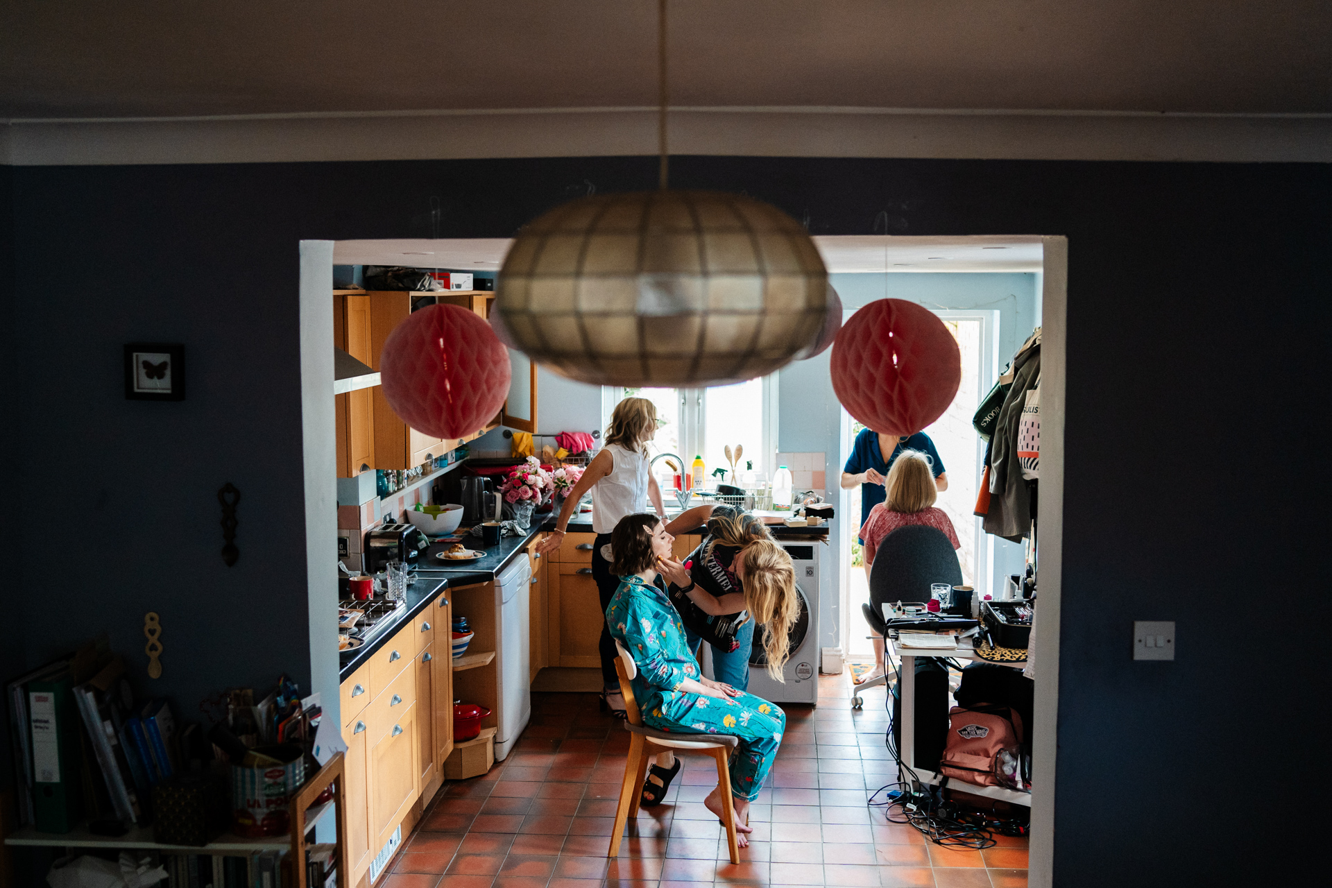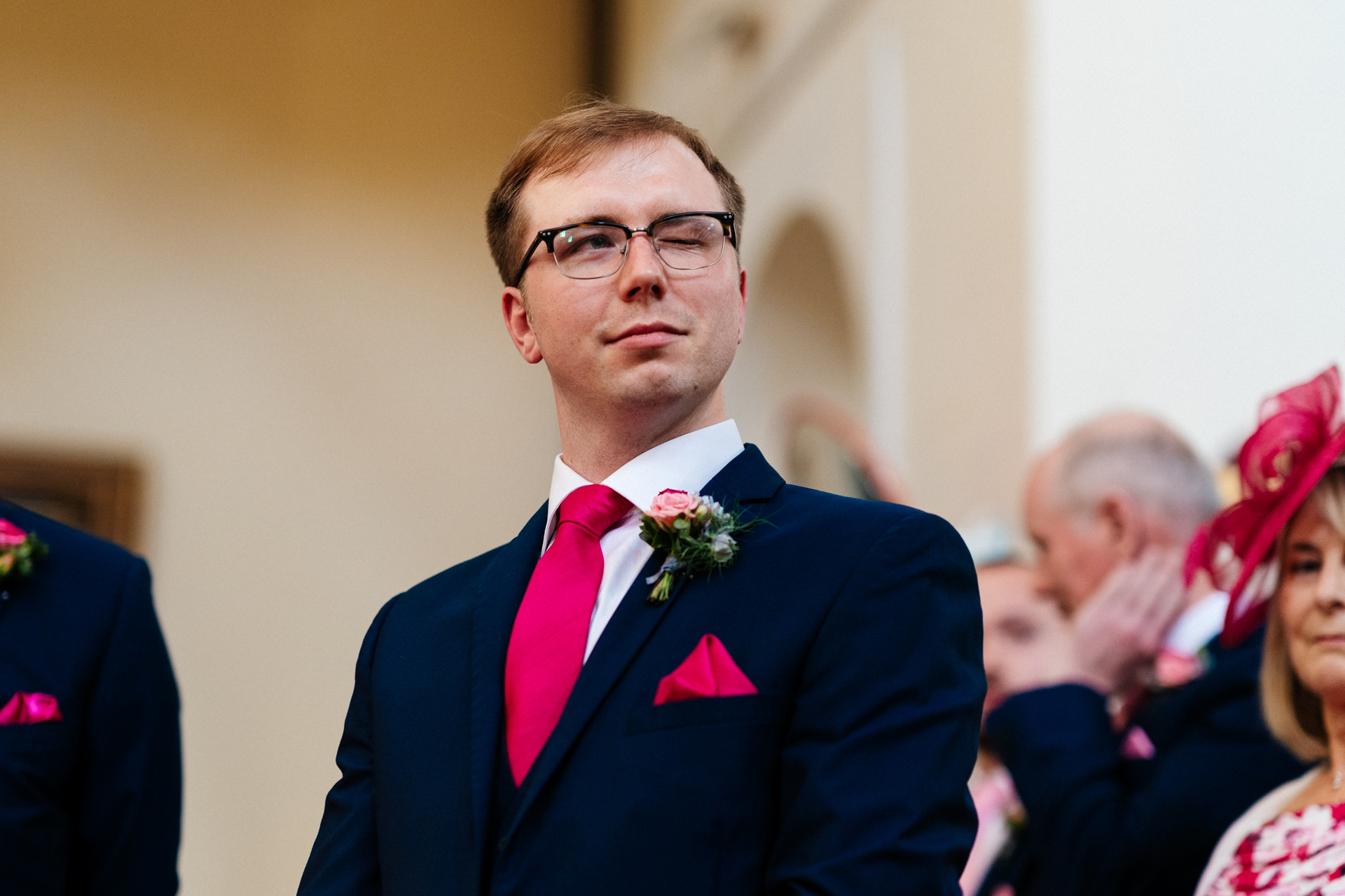 I started the day at their home getting ready. T wore a truly unique Jesus peiro wedding dress from the infamous British wedding boutique Miss Bush Bridal. Her dress had small pearls sewn into the puffed sleeves. The dress complemented her neat bob wave perfected by Hannah Monk and made for some stunning photos. The bridesmaids wore electric pink dresses.