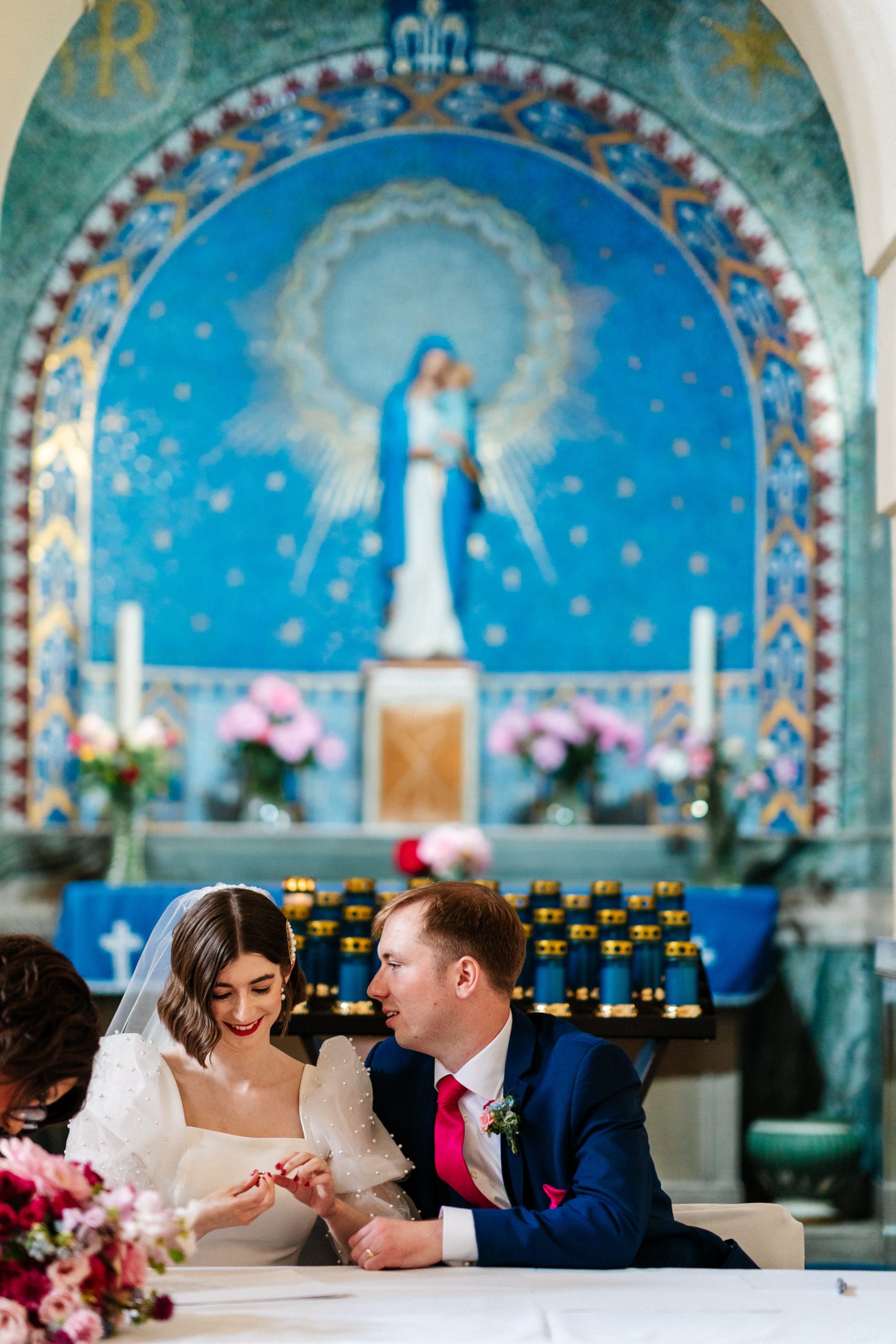 The couple arrived at the church in a vintage Morris Minor car owned by their parents. It gave a lovely touch and added to the vintage vibe of the day. They held her wedding ceremony in their local church.