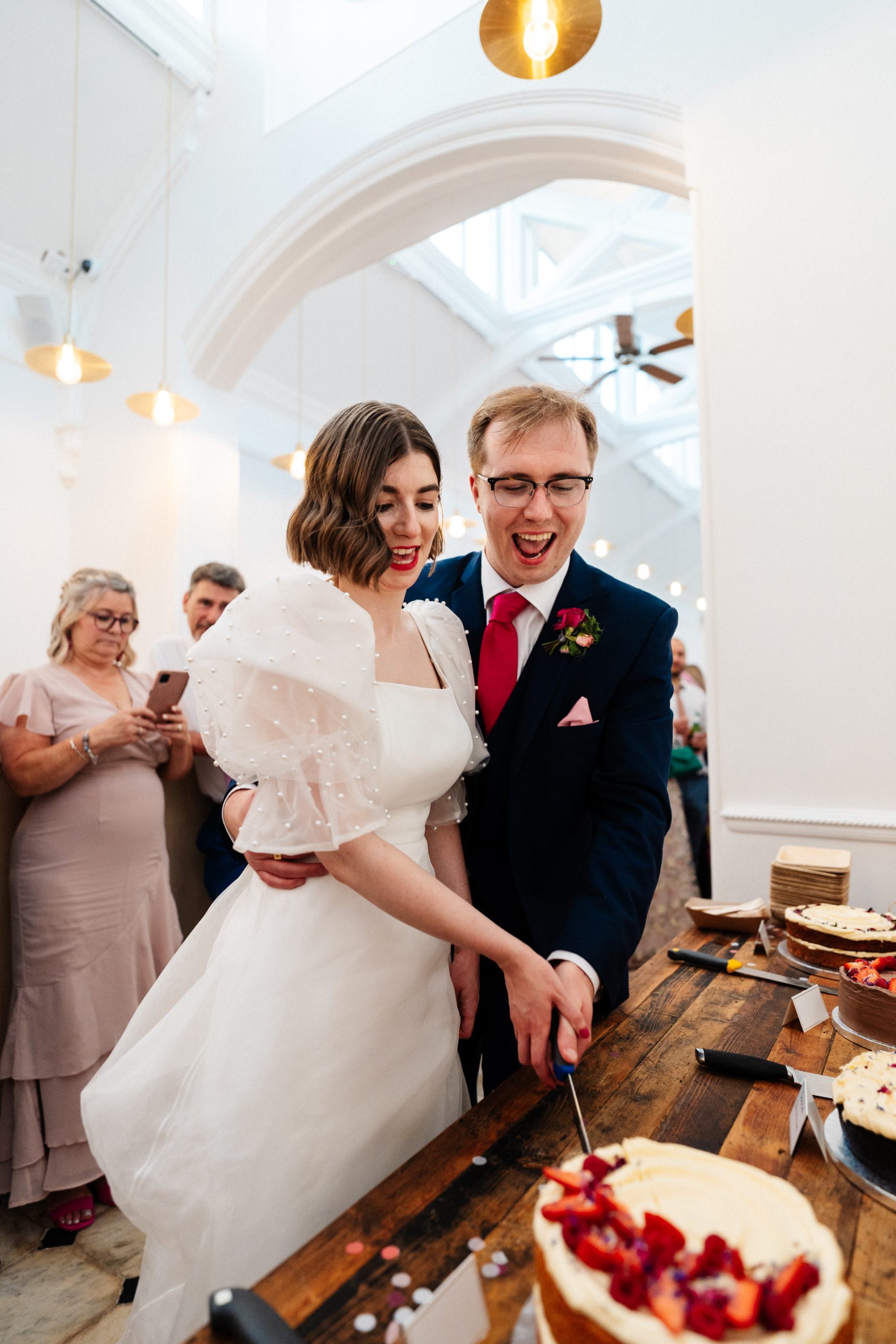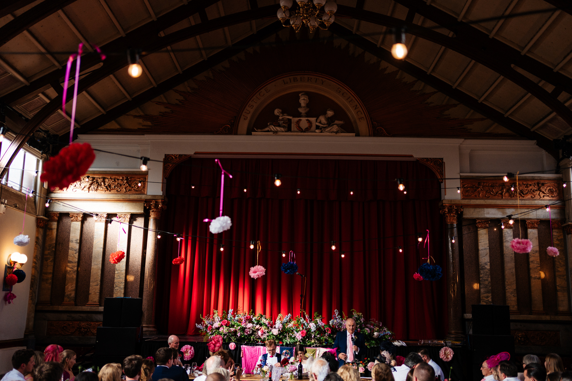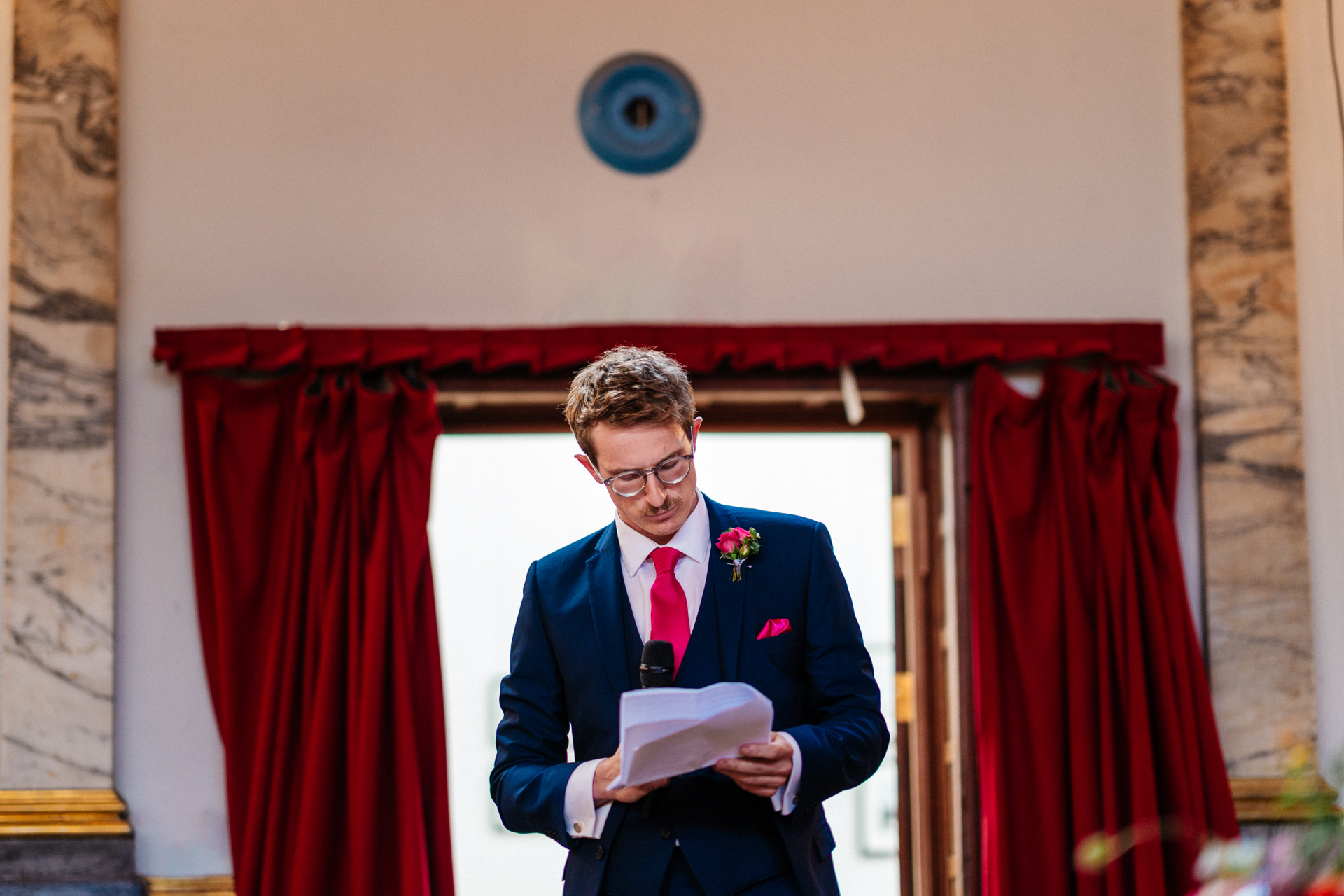 T + V got married at a venue close to where I lived for 6 years- Stanley Arts. Crazily enough I’d never been inside it until they booked me for their London wedding. It’s a fab events and arts venue in South London, with great light and gorgeous red theatre curtain for a dramatic backdrop. Stanley Arts is the ideal venue if you want a large hall type space, but also a very accessible venue via London public transport. It’s right on South Norwood high street on a pretty busy London road.