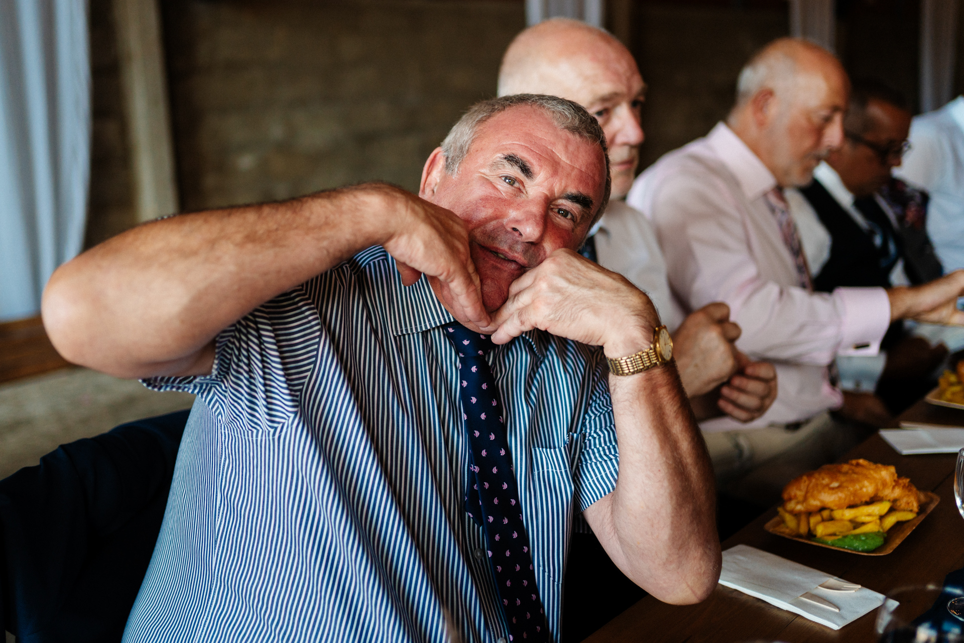 After the drinks reception we all headed to the big barn for the sit down meal. The tables were gorgeously decorated with rustic dried flowers. The couple had their friend who runs a Fish and Chip shop provide the food for everyone.