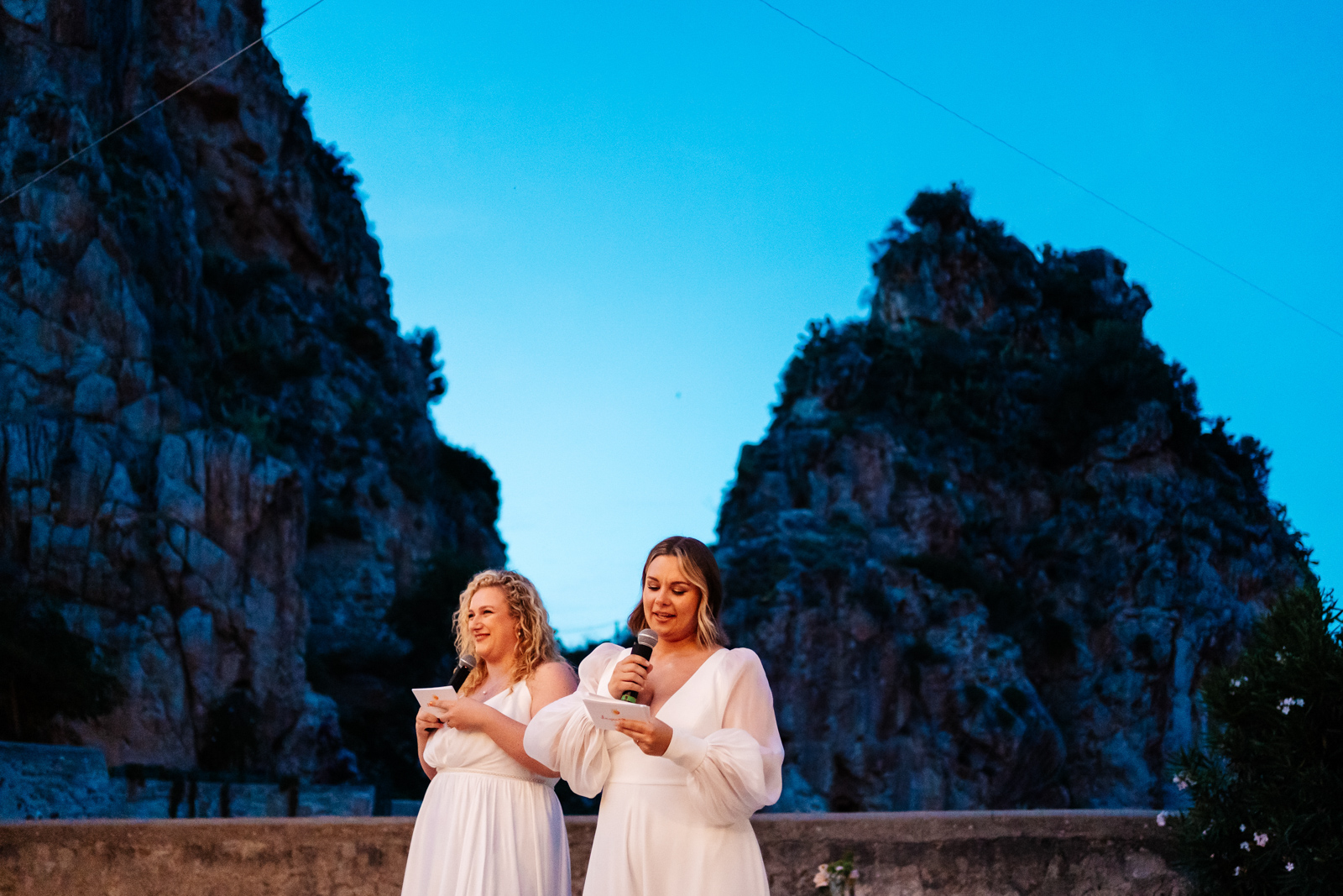 The night before the wedding day the couple had arranged for their friends and family to gather at Sushi Bar just 5 minutes walk away called La Cialoma. This event was all about welcoming their loved ones, and one of the bride’s sisters gave an emotional speech, followed by the brides giving a speech together. The whole multi day wedding event was meticulously planned by Marica Events. Marica is an Italian wedding planner who has worked in the UK. She and her team are exceptionally professional and I highly recommend her.
