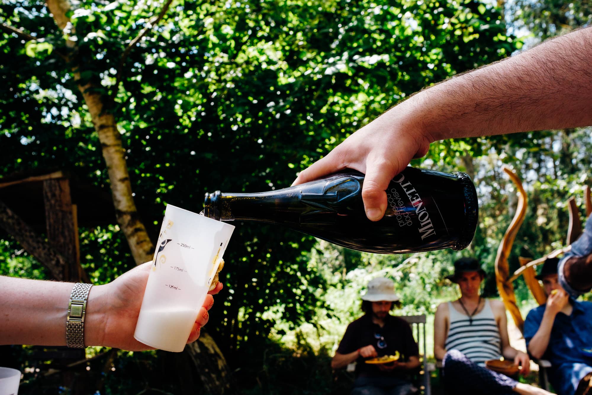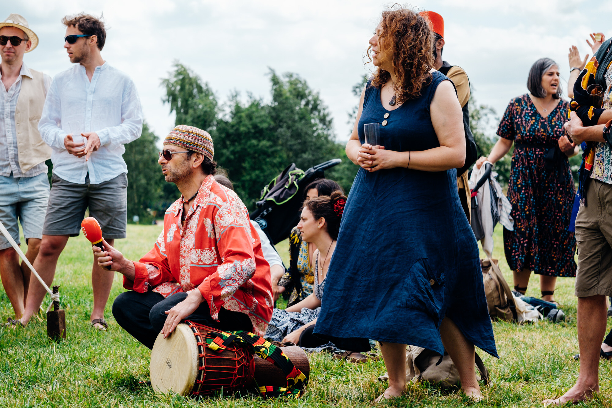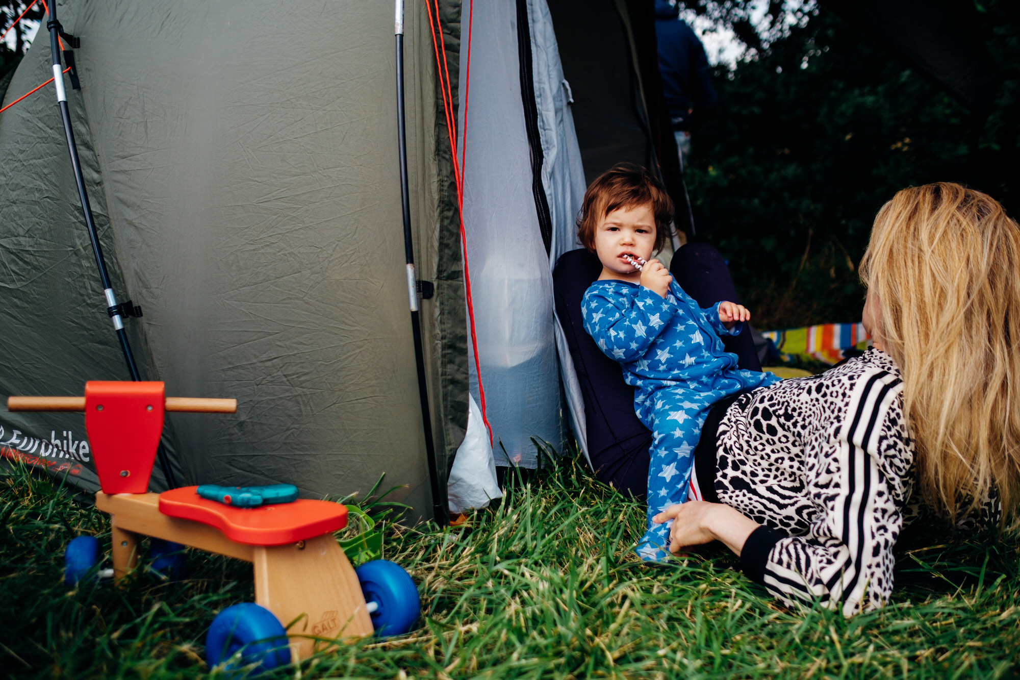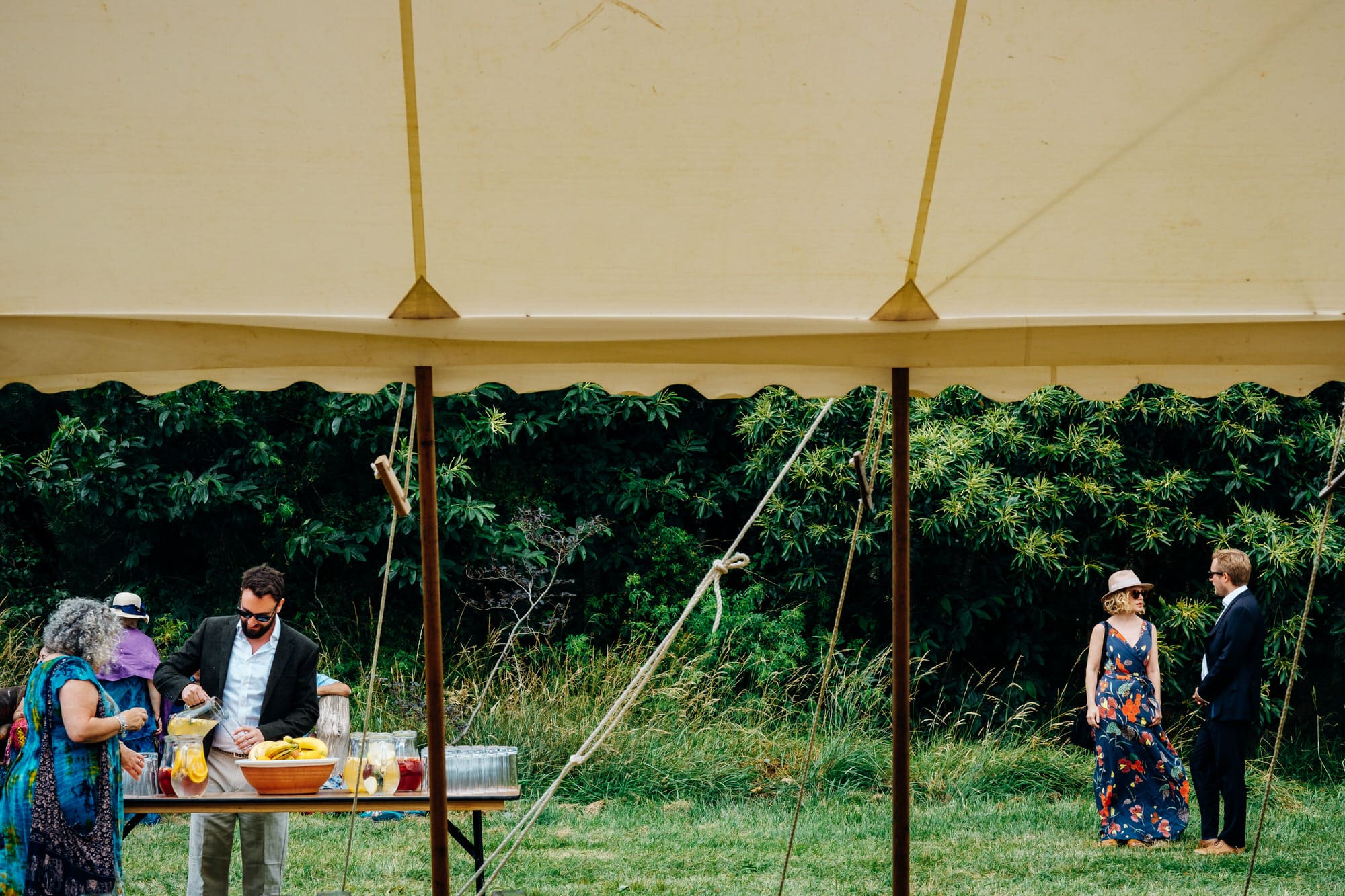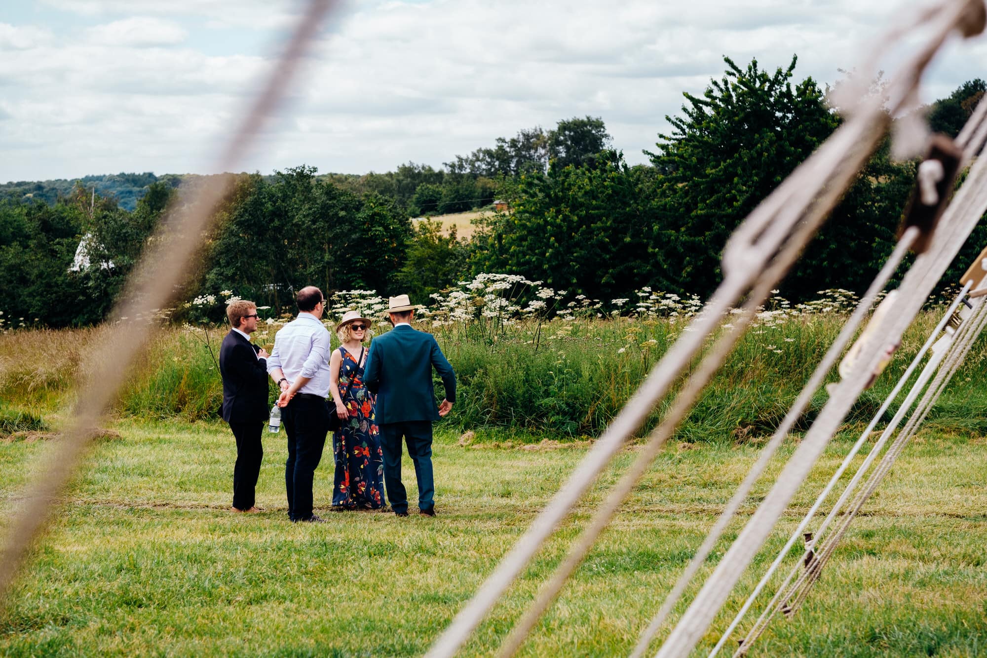 I was absolutely delighted to shoot for this couple, having photographed the bride several times before as a celebrant and wedding guest, and even more excited when I heard about their incredibly unique plans. Rachel is a storyteller who works on the festival circuit, so it was fitting that Ben and Rachel chose to really customise their entire bohemian wedding festival. For them, the wedding started from the day before, when a handful of their close friends and family joined them to help set up the DIY elements of their wedding. Their friends and family helped them to make colourful fabric bunting and put up the signposts. Wildstems created their beautiful rustic floristry for the tables. Their caterers Red Moon Roots were an integral part of the wedding, staying on site with us and providing nourishment throughout, including watermelon breaks between learning the songs for the main ceremony day. We were blessed with incredible perfect weather as we set up our tents and worked until it was dinner time served around the campfire. Ben and Rachel also arranged for a surprise ice cream van to treat their friends and family and surprise vegan marshmallows for the evening campfire.