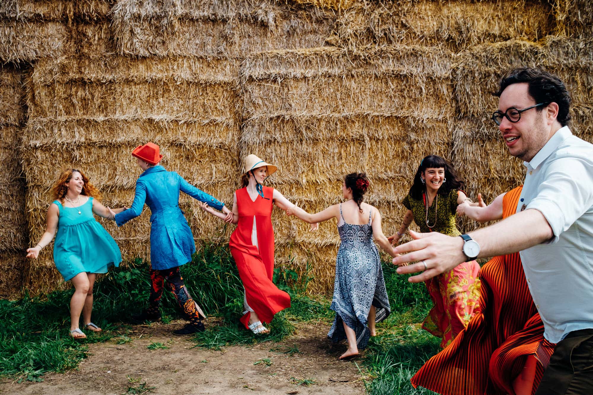 The Ceilidh Liberation Front worked together with Rachel and Ben to create a very special version of a traditional Jewish dance the Briogus Tanz was normally danced by the mother-in-laws as a pantomime of “anger and reconciliation”, but they had everyone get involved and had a lot of fun with it, including a dance move where they took turns to make scary faces at each other!